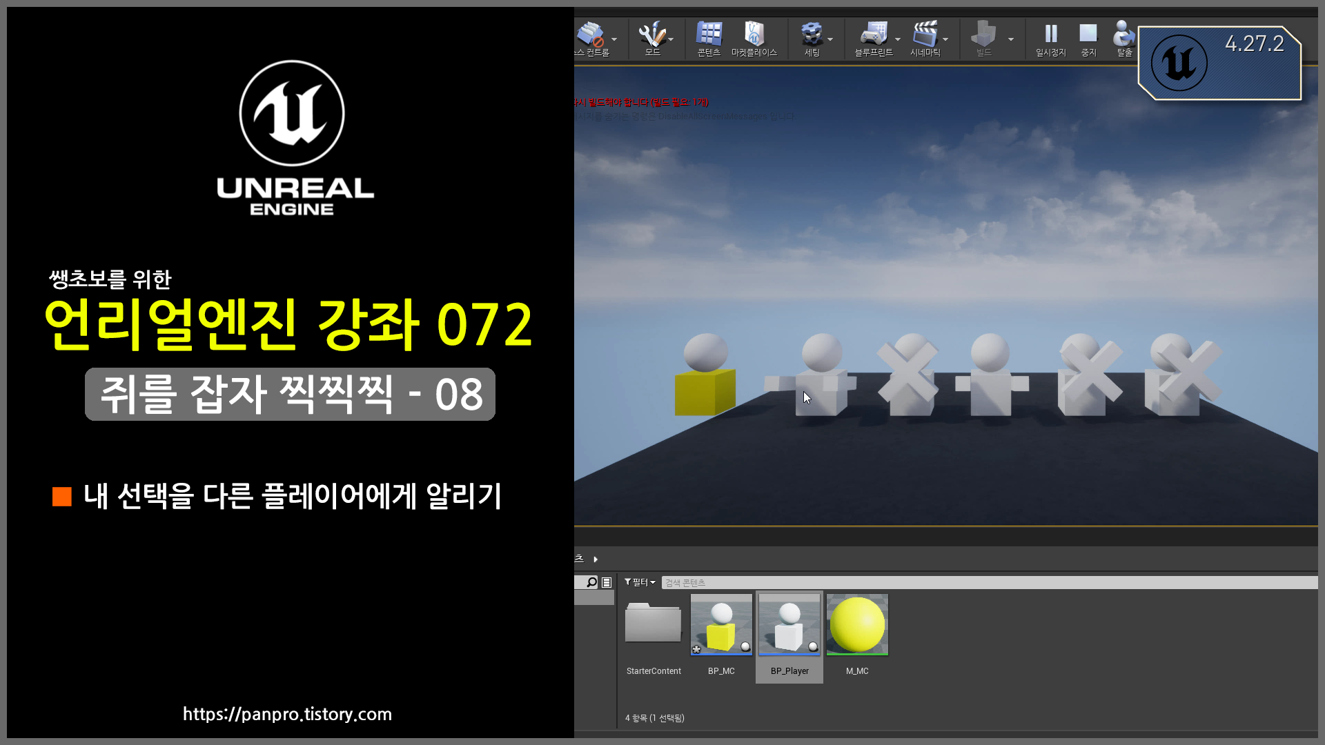 | 언리얼엔진 강좌 71 [쥐를잡자-07] 플레이어가 자기 선택으로 이벤트 발생시키기 (0) | 2023.11.21 |