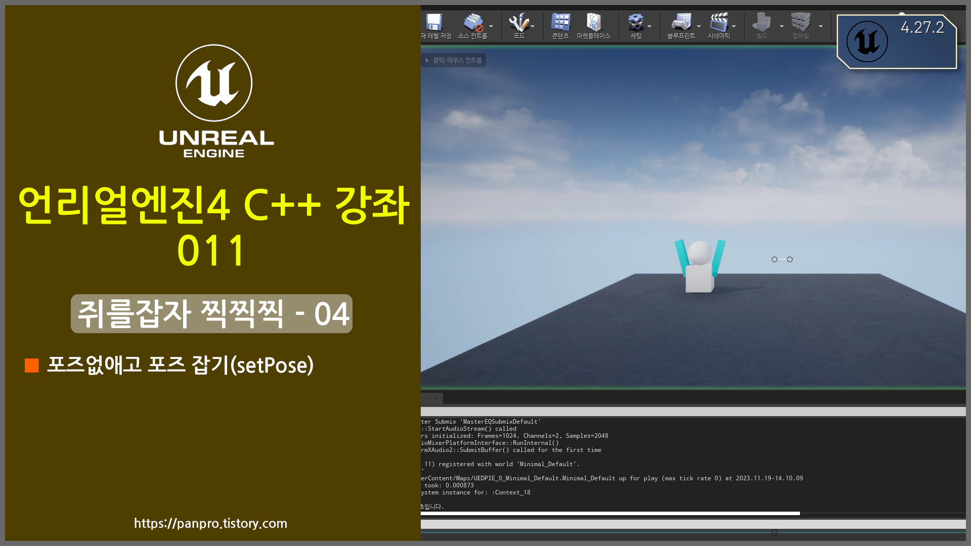 | 언리얼엔진4 C++ 강좌 8 [쥐를잡자 찍찍찍-01] cube와 sphere를 이용해 플레이어 만들기 (1) | 2023.12.04 |