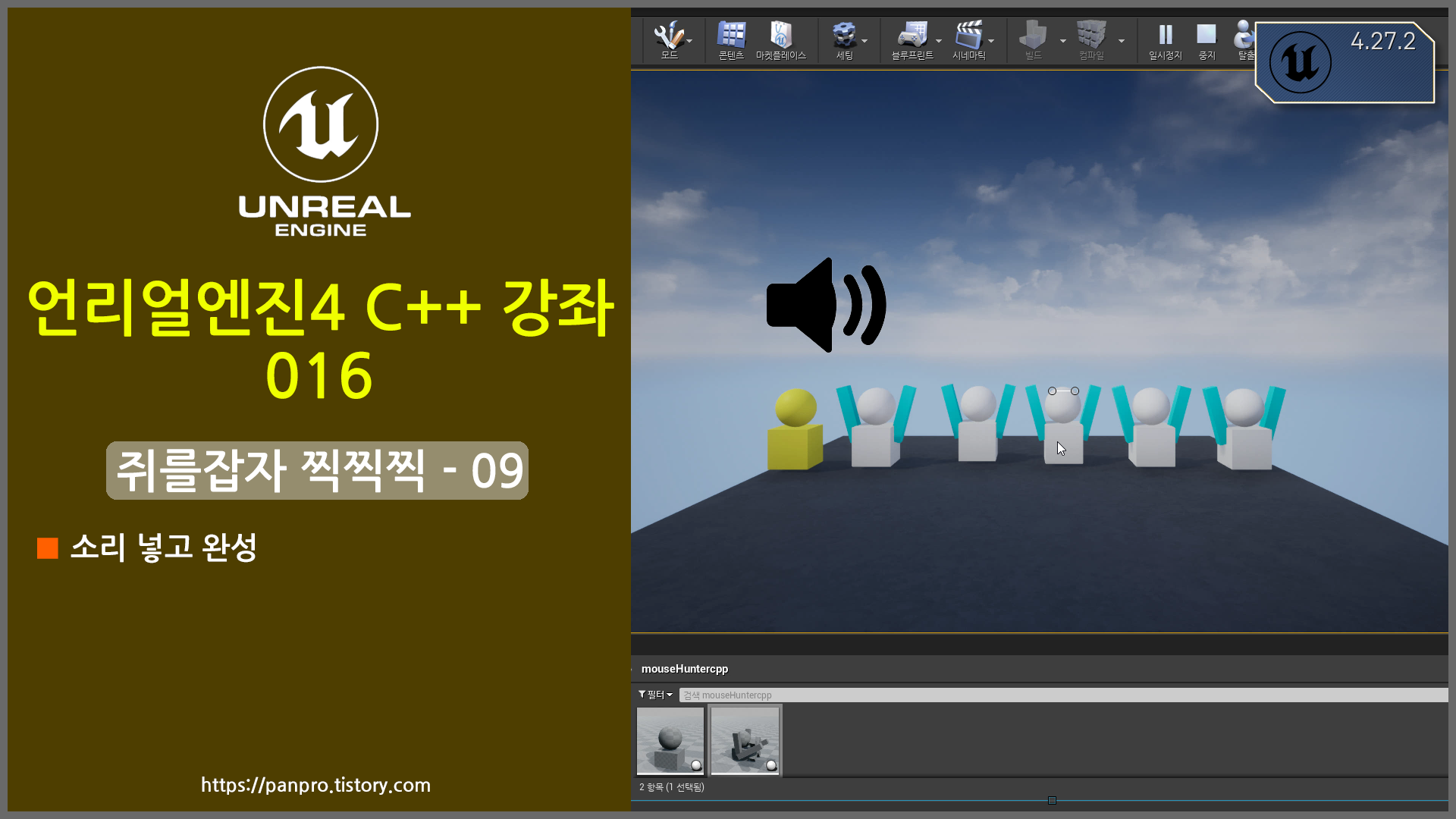 | 언리얼엔진4 C++ 강좌 12 [쥐를잡자 찍찍찍-05] 게임진행자 만들고 게임 진행하기 (1) | 2023.12.26 |