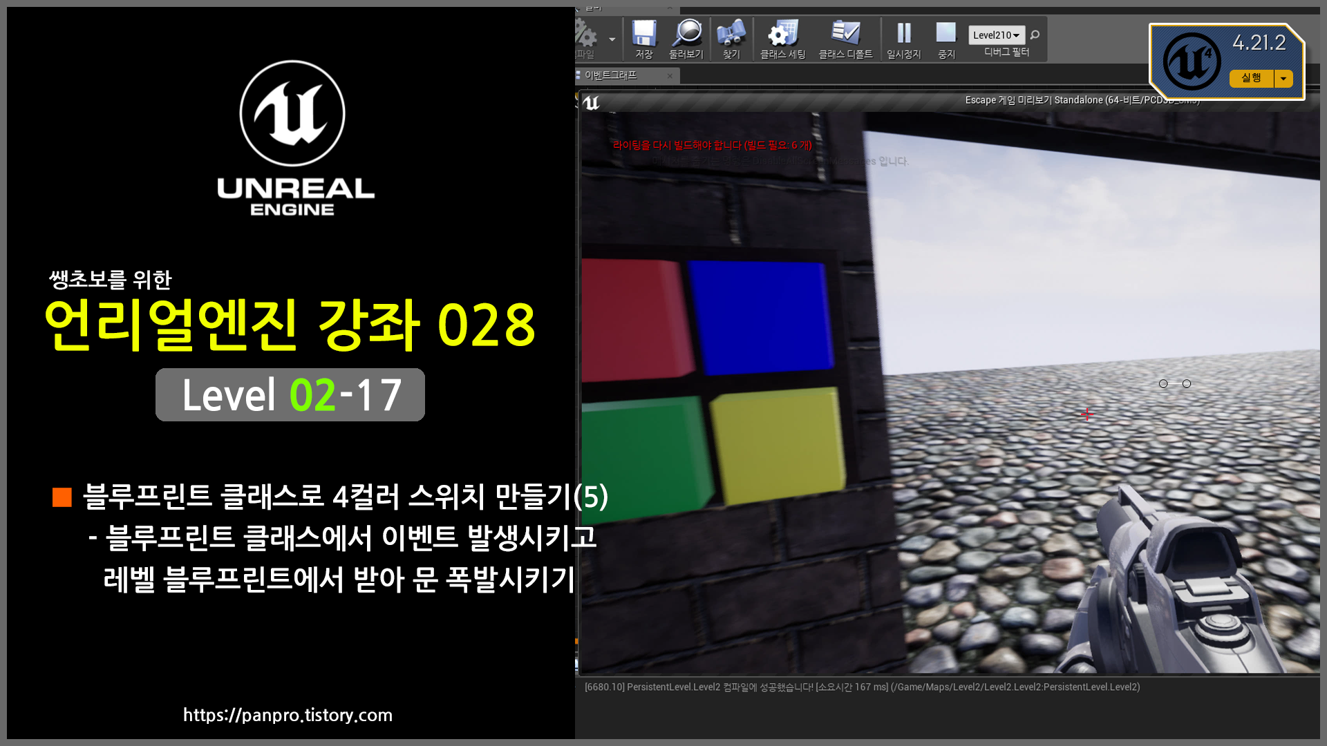 언리얼엔진 4 c++ 강좌입니다. 첫 번째 시간으로 c++로 Actor 클래스를 만들고 static mesh component를 추가합니다. 그리고 에디터에서 mesh를 바꿔보기도 하고 material도 설정해 봅니다. 그리고 항상 에디터에서 mesh를 바꿔줄 수는 없기 때문에 Actor 클래스 내에서 static mesh를 결정해 주는 방법도 배워봅니다. 먼저 static mesh를 위해 UStaticMeshComponent 컴포넌트를 추가해 줍니다. // MyActor.h파일 UPROPERTY(EditAnywhere) UStaticMeshComponent* pMeshComp; 생성자에 아래와 같이 컴퍼넌트를 생성하고, UStaticMesh를 생성해서 컴퍼넌트에 그 UStaticMesh를 추가해 준다...