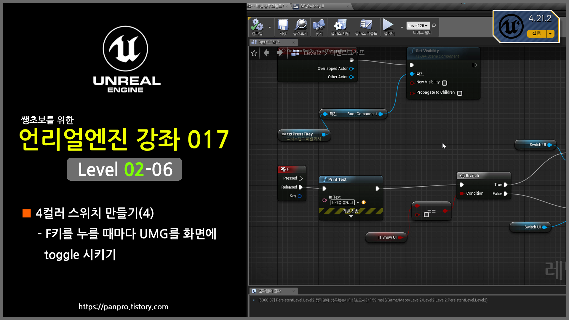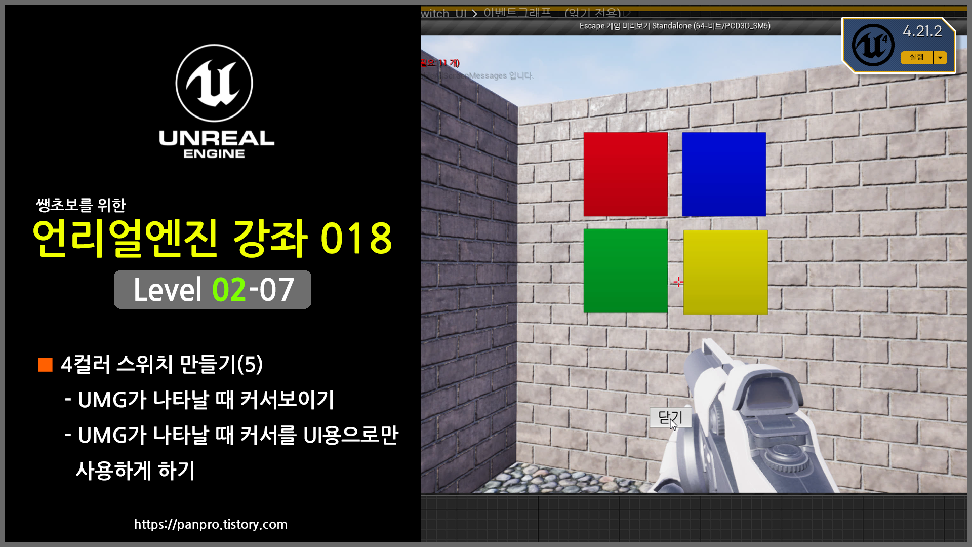 내가 만든 actor인 LampActor에 이벤트를 추가합니다. 그리고 레벨 블루프린트와 연결되는 ScriptActor를 만들어서 LampActor에서 발생하는 이벤트를 LevelScript Actor에서 받아 처리하는 방법을 설명합니다. // LampActor.h DECLARE_EVENT(ALampActor, FLightSetEvent) // LampActor.h public: FLightSetEvent& OnLigthSet() { return lightSetEvent; } private: FLightSetEvent lightSetEvent; 램프 액터의 헤더 파일에 위와 같이 이벤트를 선언합니다. // LampActor.cpp lightSetEvent.Broadcast(); 위 코드로 이벤트를 발생시..